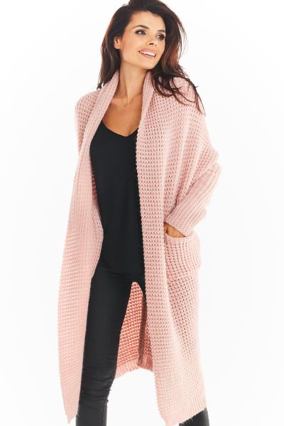 Długi Kardigan z Szalowym Kołnierzem – Różowy