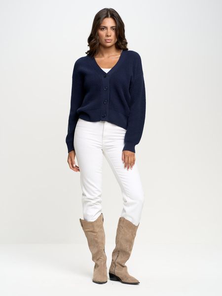 Sweter kardigan damski o strukturalnym splocie granatowy Sabira 403