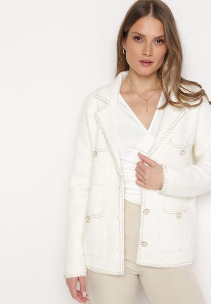 Biały Kardigan Wiskozowy Ozdobiony Złotą Nicią Eontta