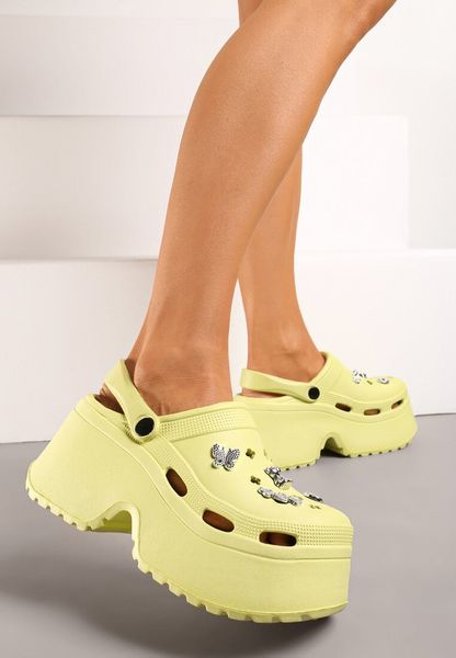 Żółte Piankowe Klapki na Platformie z Paskiem na Piętę i Metalicznymi Ozdobami Whisella