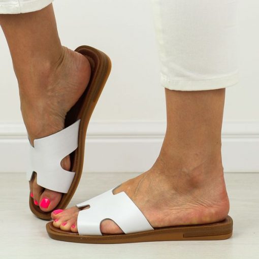 Białe skórzane klapki damskie Cambell 64013