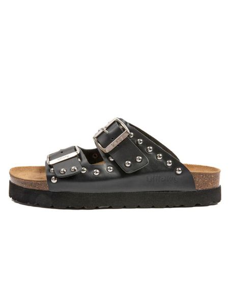 – zapięcie: sprzączka- noski: otwarte- detale: ozdobne nity- skórzana wkładka: tak- podeszwa: antypoślizgowa