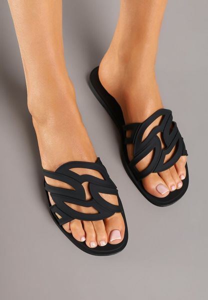 Czarne Klapki Ozdobione Wycięciami Luriella