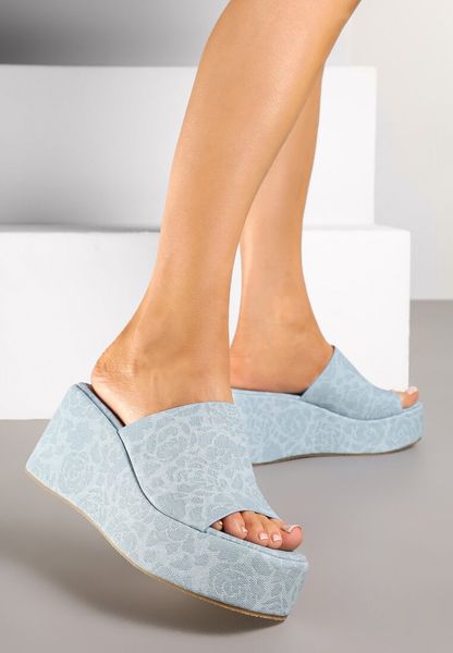 Niebieskie Klapki na Koturnie Zdobione Panterkowym Tłoczeniem Xovianne