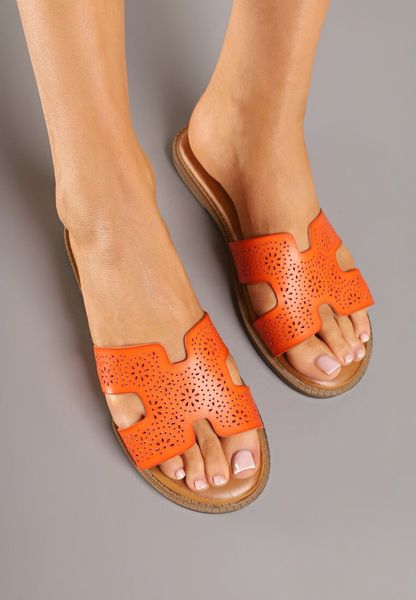 Pomarańczowe Eleganckie Klapki z Ozdobną Perforacją Tillivella