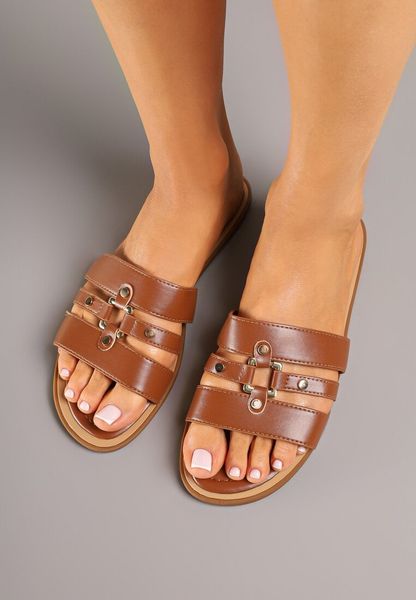 Brązowe Klapki z Metalicznymi Ozdobami Nellavira