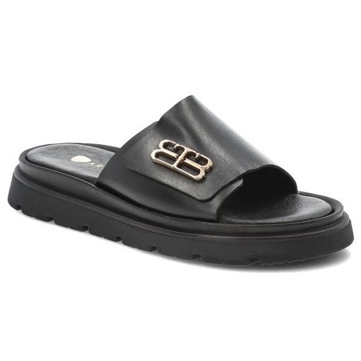 Czarne Klapki Armodo Eleganckie Obuwie Damskie