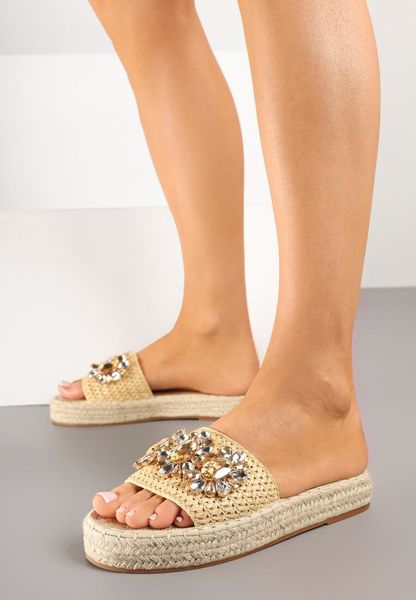 Beżowe Klapki Ozdobione Plecionką i Cyrkoniami Deldisa
