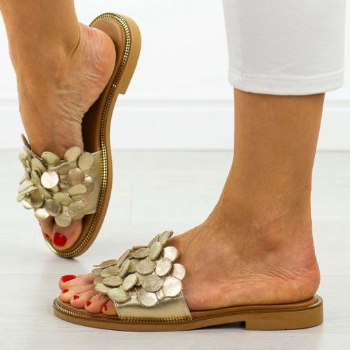 Złote skórzane Polskie klapki damskie Suzana Vam
