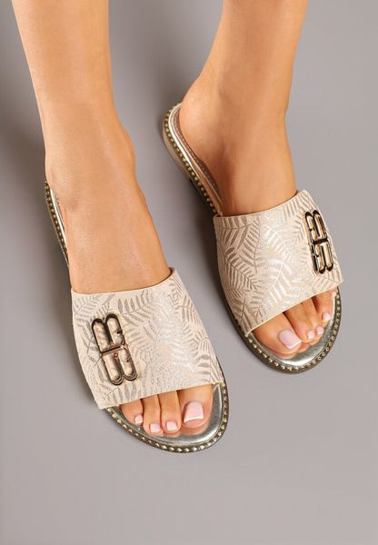 Beżowe Klapki z Metaliczną Klamerką i Wkładką ze Skóry Naturalnej Liravan