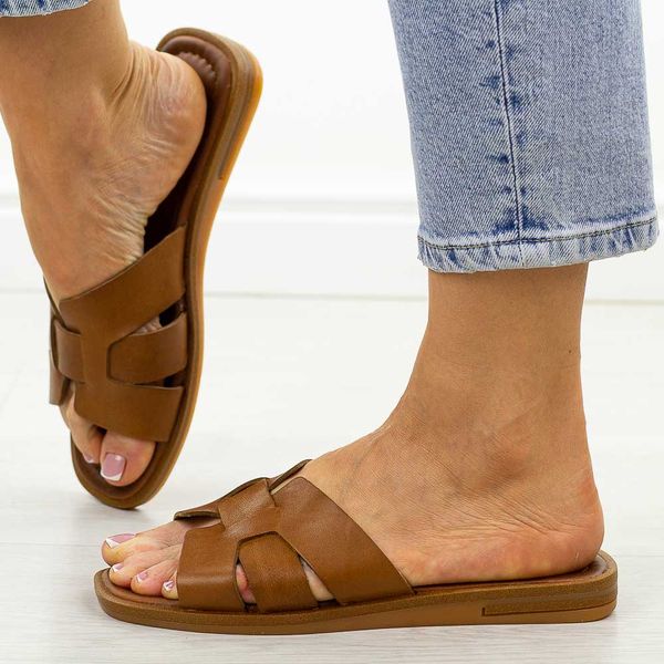 Brązowe skórzane klapki damskie Cambell 64310