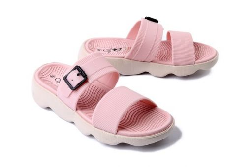 Klapki na koturnie. Różowa cholewka. Miękka wkładka. Modna podeszwa. Wygodne.