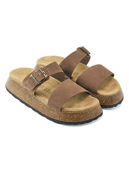 – skóra nubukowa- zapięcie: sprzączka- noski: otwarte- skórzana wkładka: ergonomicznie formowana- podeszwa: antypoślizgowa