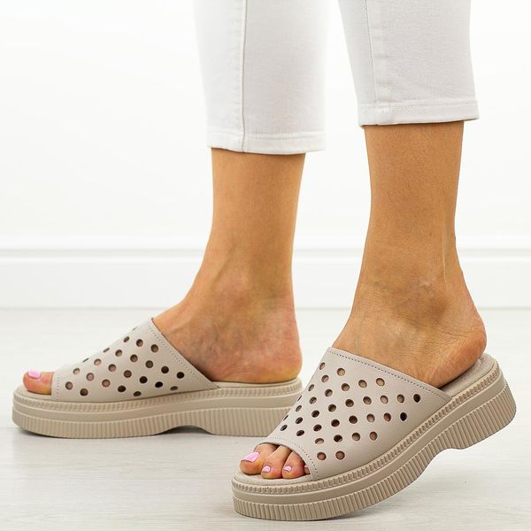 Beżowe skórzane klapki damskie na platformie S.Barski 537