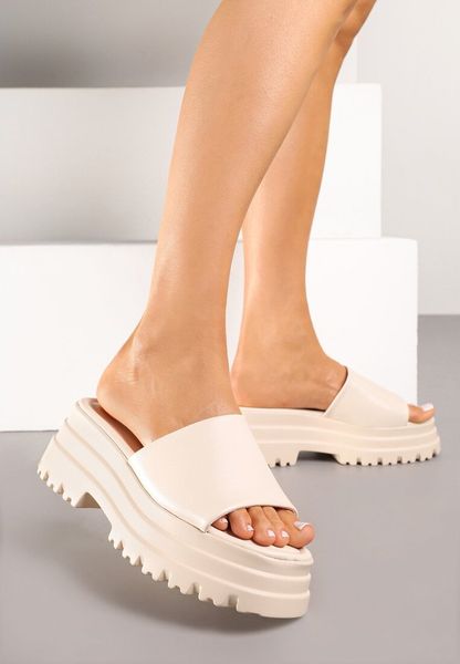 Beżowe Klapki na Grubej Podeszwie z Tłoczeniem Fevenne