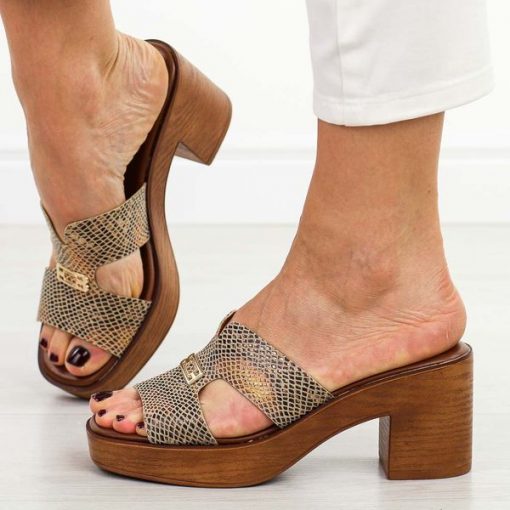Złote wąż klapki damskie na obcasie M.Daszyński 23126-11