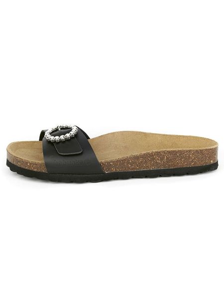 – zapięcie: sprzączka- noski: otwarte- detale: błyszczące kamyczki- skórzana wkładka: ergonomicznie formowana- podeszwa: antypoślizgowa