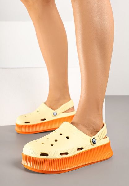 Żółte Piankowe Klapki na Tłoczonej Platformie z Paskiem na Piętę Isallia