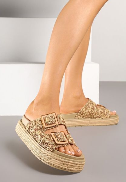 Ciemnobeżowe Klapki na Platformie z Plecionką Klamrami Ronarisa