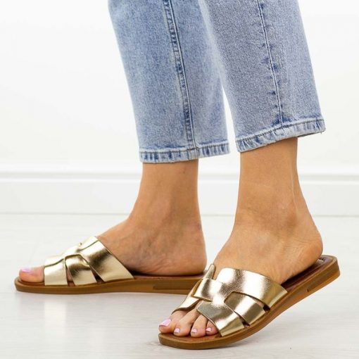 Złote skórzane klapki damskie Cambell 64310