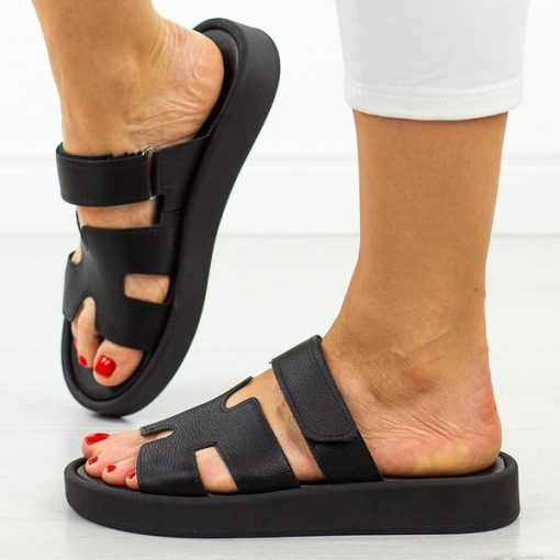 Czarne skórzane Polskie klapki damskie Suzana Ven