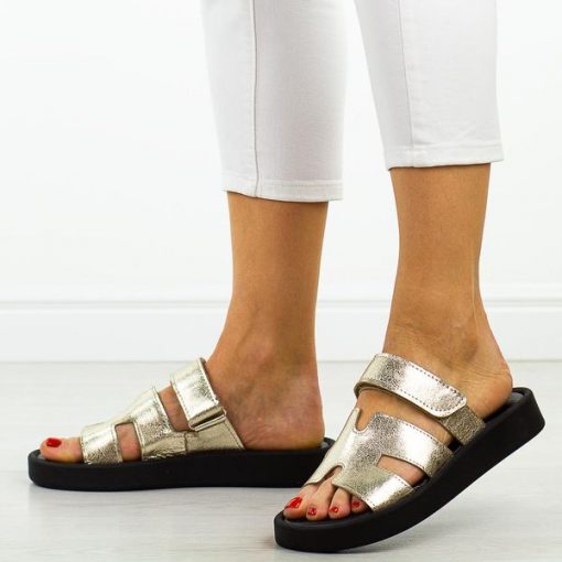 Złote skórzane Polskie klapki damskie Suzana Ven