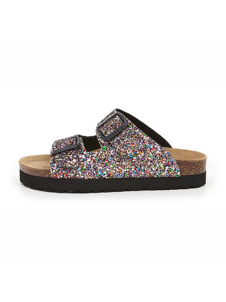 – zapięcie: sprzączka- noski: otwarte- powierzchnia: błyszcząca- wkładka: ergonomicznie formowana- podeszwa: antypoślizgowa