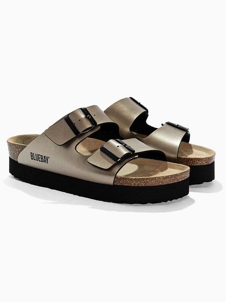 – zapięcie: bez- noski: otwarte- powierzchnia: z metalicznym połyskiem- detale: ozdobna klamra- skórzana wkładka: ergonomicznie formowana- podeszwa: profilowana
