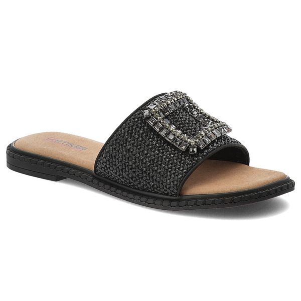 Klapki damskie Artiker, boho eleganckie z ozdobą na płaskim obcasie, czarne, 56C1339