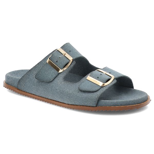 Klapki damskie HEE, ze skóry naturalnej na platformie klasyczne z klamrami, jeansowe, 25050