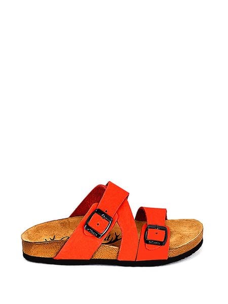 – ze skóry cielęcej- zapięcie: sprzączka- noski: otwarte- skórzana wkładka: ergonomicznie formowana- podeszwa: antypoślizgowa