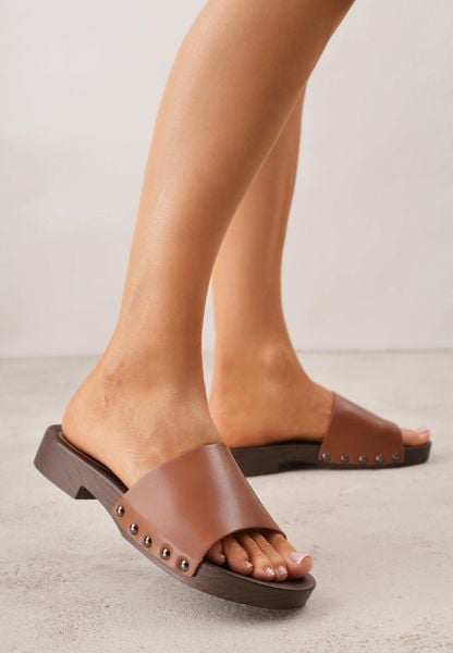 Brązowe Klapki w Klasycznym Stylu z Nitami Talove
