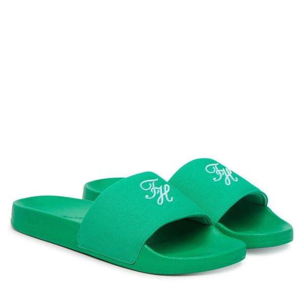 Klapki Tommy Hilfiger Th Script Pool Slide FW0FW09286 Zielony