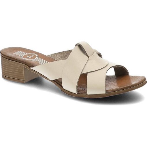 Beżowe Klapki Lemar Wygodne Skórzane Buty Damskie