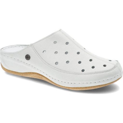 Białe Klapki Pollonus Wygodne Skórzane Buty Damskie