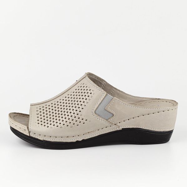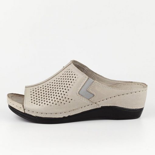Szare skórzane klapki damskie na koturnie T.Sokolski L25-157