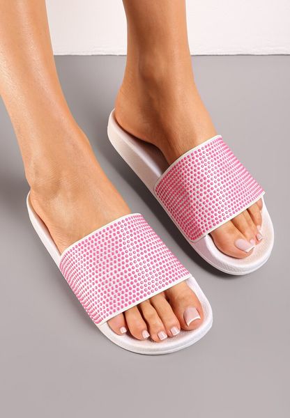 Fuksjowe Klapki Ozdobione Cyrkoniami na Szerokim Pasku Alitia