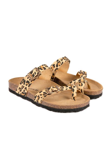 – zapięcie: sprzączka- otwarte noski- pasek: skóra- wkładka: formowana ergonomicznie- powierzchnia: wzorzysta- lekko profilowana podeszwa