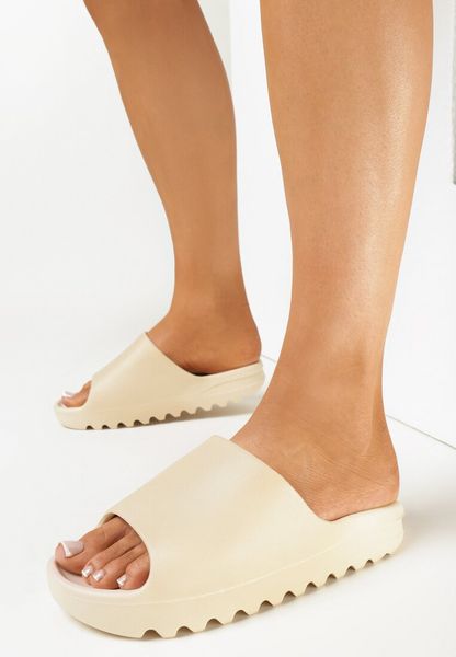 Beżowe Piankowe Klapki na Podeszwie z Wycięciami Ferietta