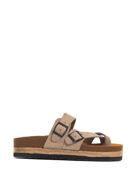 – skóra welurowa- zapięcie: bez- noski: otwarte- skórzana wkładka: ergonomicznie formowana- forma obcasa: platforma- podeszwa: antypoślizgowa