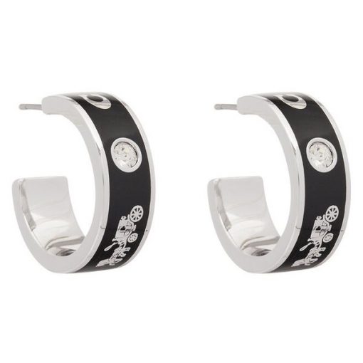 Kolczyki Coach Enamel Horse & Carriage Hoop Earrings 37479036RHO003 Czarny