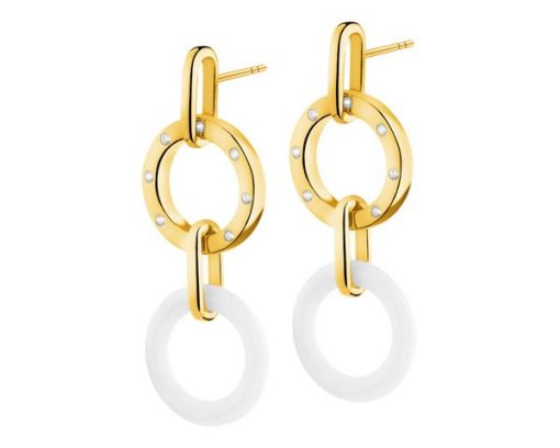 Kolczyki z ceramiki i mosiądzu pozłacane z cyrkoniami – AR537-4660. Mosiądz pozłacany