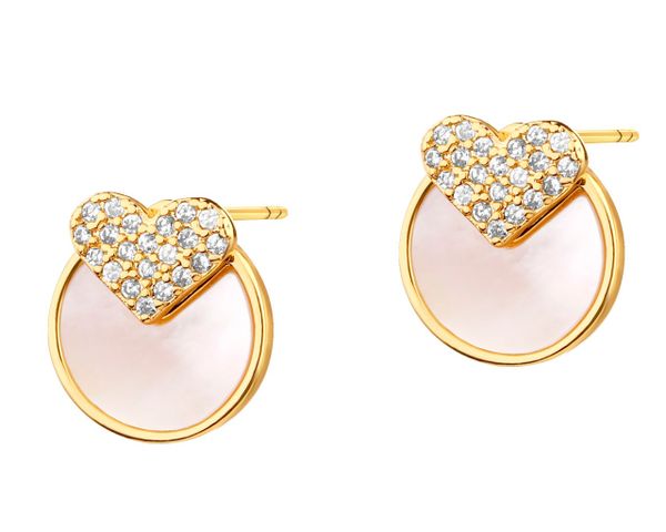 Kolczyki z mosiądzu pozłacane z cyrkoniami i masą perłową – serca – AR537-8790. Mosiądz pozłacany, srebro pozłacane