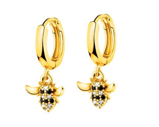 Kolczyki z mosiądzu pozłacane z cyrkoniami – pszczółki