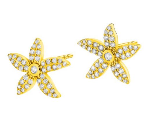 Kolczyki z mosiądzu pozłacane z cyrkoniami – kwiaty – AR538-2973. Mosiądz pozłacany, srebro pozłacane