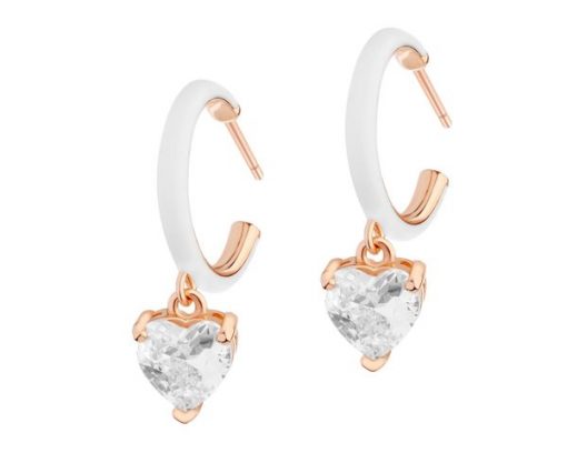 Kolczyki z mosiądzu pozłacane z kwarcami i emalią – serca