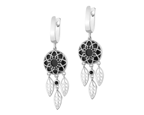 Kolczyki z mosiądzu rodowane z agatem i cyrkoniami – łapacz snów – AR536-8139. Mosiądz rodowany