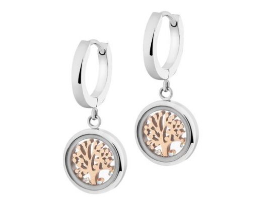 Kolczyki ze stali szlachetnej z cyrkoniami i szklanymi detalami – drzewko – AR539-5555. Stal szlachetna