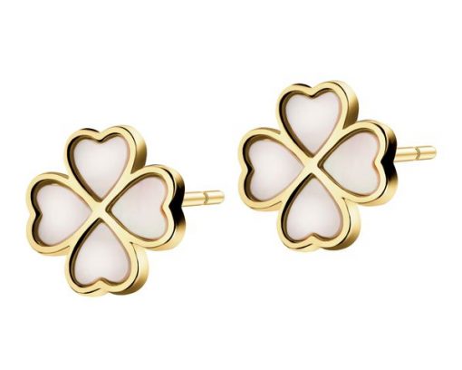 Kolczyki z mosiądzu pozłacane z masą perłową – koniczyna – AR537-8482. Mosiądz pozłacany