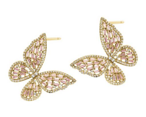 Kolczyki z mosiądzu pozłacane z cyrkoniami – motyle – AR537-8494. Mosiądz pozłacany